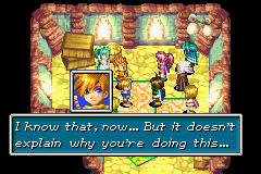Saturos and Menardi strike their deal: the Elemental Stars in exchange for Jenna and Kraden's safety.