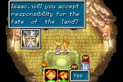 The Great Healer asks Isaac if he accepts the mission given to him by the Wise One. Ironically, this yes-or-no question is perhaps one of the most vital points in Weyard's history.