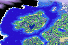 The main landmasses in the Great Western Sea are those of Hesperia (centre) and Atteka (bottom). It is thus very important from a story perspective, as it holds Jupiter Lighthouse.