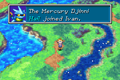 Hail is a Djinni that is randomly encountered in a specific area of the overworld that otherwise appears to be pointless scenery. Thus, it is very often missed by players playing the game the first time without any outside information. The battle with Hail may ensue in place of a random battle in the stretch of land to the southwest of Altmiller Cave, possibly as soon as the player crosses the bridge.