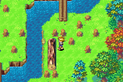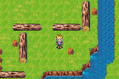When you first enter Kolima Forest, if you hadn't already seen the cutscene that occurs when you enter the nearby town of Kolima for the first time, a shortened variation on that cutscene will transpire here, and therefore the cutscene that occurs at Kolima won't occur anymore. Regardless, when you go up, go northeast until you can push a vertical rolling log left into the river. Go up over the two-stick bridge and go left, pushing the next vertical rolling log left so you can enter the next area through the left end of the screen.