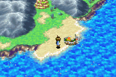 To acquire use of the vessel the player must help Piers retrieve his stolen Black Orb (or "Black Crystal") from the Kibombo witch doctor to-be Akafubu. The Great Gabomba, the guardian of the village, requires an offering (a small round crystal) from Akafubu before he will be accepted as the new witch doctor. Unfortunately for Piers, when Akafubu's original crystal does not work, his one fits the bill as a replacement and is stolen from Madra. Felix helps Piers recover his crystal, allowing them to set out to sea. Unfortunately, when and they return to East Indra Shore they find the ship overrun with monsters known as Aqua Jellies. Felix and co. clear the ship of these monsters and place Piers' Black Crystal into a pedestal in the engine room, finally allowing the Adepts to set out to sea.