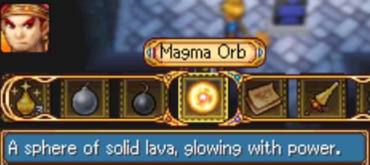 Magma Orb in inventory, obtained by the use of cheat codes.