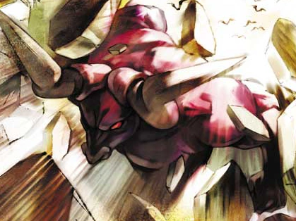 A Minotaurus visualized on the primary promotional art of the original Golden Sun.