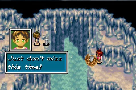 Riki (ウプル Upuru) and Tavi (ペチャロ Pecharo) are a pair of young boys from Daila who play the part of the town miscreants. They are playing at what is supposed to be an off-limits area - the Shrine of the Sea God dungeon - when the tidal wave strikes all of Indra, and the two are separated by a chasm with one trapped at an end. If Felix's party helps them out with the Lash Psynergy found in Kandorean Temple, they will tell Felix about a Jupiter Djinni (Breath) they've been trying to catch before they return to Daila. Afterwards, the town of Daila will update, and it's only at this point when the kids have returned that an easily missed cutscene with Alex can occur at Daila's manor.