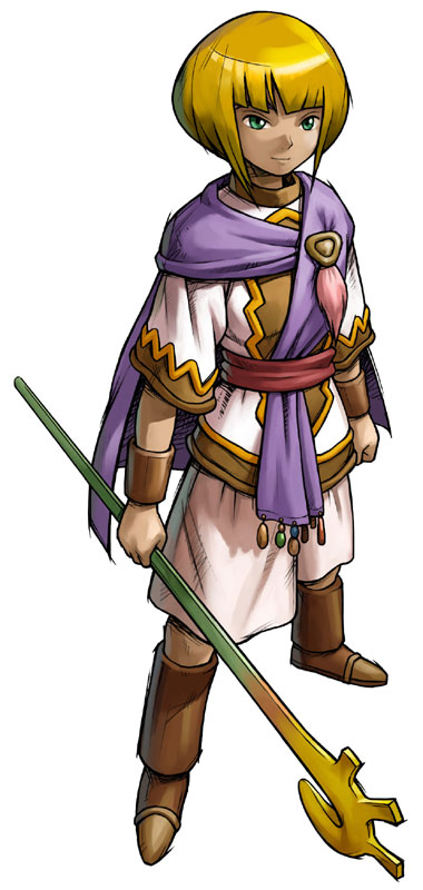 "This Warrior of Vale helped Felix and his compatriots trigger the Golden Sun. She is a brave ally and a skilled Wind Adept. While her actual origins are still unknown, some say she is a child of the gods, since she literally fell out of the sky as a baby."