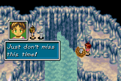 Early in the game, when you enter the location from the overworld, climb down the ladder and head a short ways up until a cutscene with two boys trigger. Riki is unable to use the coiled rope to get to Tavi's position, so he scampers off into a cave doorway to the right. Follow him to a dead-end if you want, but the point is to use the Lash Psynergy on the coiled rope to help the boys out. This can only be done after completing the first proper dungeon of the game, Kandorean Temple, and helping the boys out and watching the subsequent cutscene will cause the town of Daila to update and allow you to explore more of the dungeon in search of the prize the kids were looking for in the first place: A Jupiter Djinni. Climb the newly tied rope and enter the cave doorway to the left.