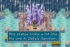 As soon as you gain the ability to sail the seas of the world with the Lemurian Ship with Piers permanently in your party, you can return to this Dungeon to retrieve its most important key item at the end, but you must return to Daila first and retrieve the Sea God's Tear from its sanctum. Once the Tear is in your inventory, reenter the Shrine and follow the above instructions to make it back to the point where you had acquired the Jupiter Djinni, and use Piers' Frost Psynergy on the three puddles to make it into the cave doorway you couldn't reach earlier.