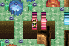 In Dark Dawn, Steel is located in Kaocho's main town area. The "official" way of getting to it is to first exit off the top of the main town area where the area map displays the second green up arrow from the right, and enter the eastern part of the palace gate area immediately left of the river with the lily pads. Hop up across the lilypads, go up the small rock stairs, hop left onto the tiled surface, and stand to the left of the right red flag outside the palace gate. Cast Grip to bring yourself to the left flag. There is also an unofficial and easier way to Grip this left flag - simply stand on the stairs leading to the palace until your elevation matches the flag, and Grip the flag to transport yourself a short distance southwest. Once there, follow the linear path down the western hidden path back into the town area and hop to where Steel is. After getting it, hop to the left to exit the town.