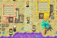 If the party gets caught in a whirlwind in the Suhalla Desert, the tornado will set them down just outside Suhalla. There are a few hidden items in the village, and a boy can be reached on a roof using Psynergy. The village has little to do with the story, except for a single, optional cutscene. There is no Weapon or Armor shop in village, so it's mostly used as a safe haven for the inn. The village seems to be Middle Eastern in it's culture and style of building. As a very small village, Suhalla isn't home to many remarkable features, and only has a single shop, the item vendor. Despite this, business for the village's inn is booming, largely due to the misfortune of others. Namely, the workers travelling from Tolbi to work on Babi Lighthouse to the south, and any other travelers who enter the desert (aside from Adepts), are all blown back into Suhalla by the treacherous winds. Because of this, the inn's owners are quietly joyous about the hostile state of the desert.