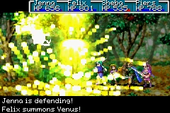 Venus is a Summon sequence in Golden Sun and Golden Sun: The Lost Age. When one Djinni of the Venus Element is on standby, the Venus Summon sequence can be activated. It resembles an image of a Venus Djinni summoning yellow energy from the ground to engulf the enemy party. It has a base Venus power of 30 and also does additional damage equivalent to 3% of the enemy’s maximum HP.