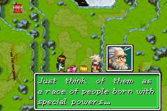 The other major theory is that associated to Alchemy, and was theorised by Kraden, Maha and, to a lesser extent, Sheba. They believed that the wind picked up particles of Psynergy Stone deposits in Air's Rock and blew them over Garoh, endowing the people of that town with Adept-like powers of varying potency. This mutational influence could thus be the cause of both the residents of Garoh's use of Whirlwind and their form-changing behaviour.